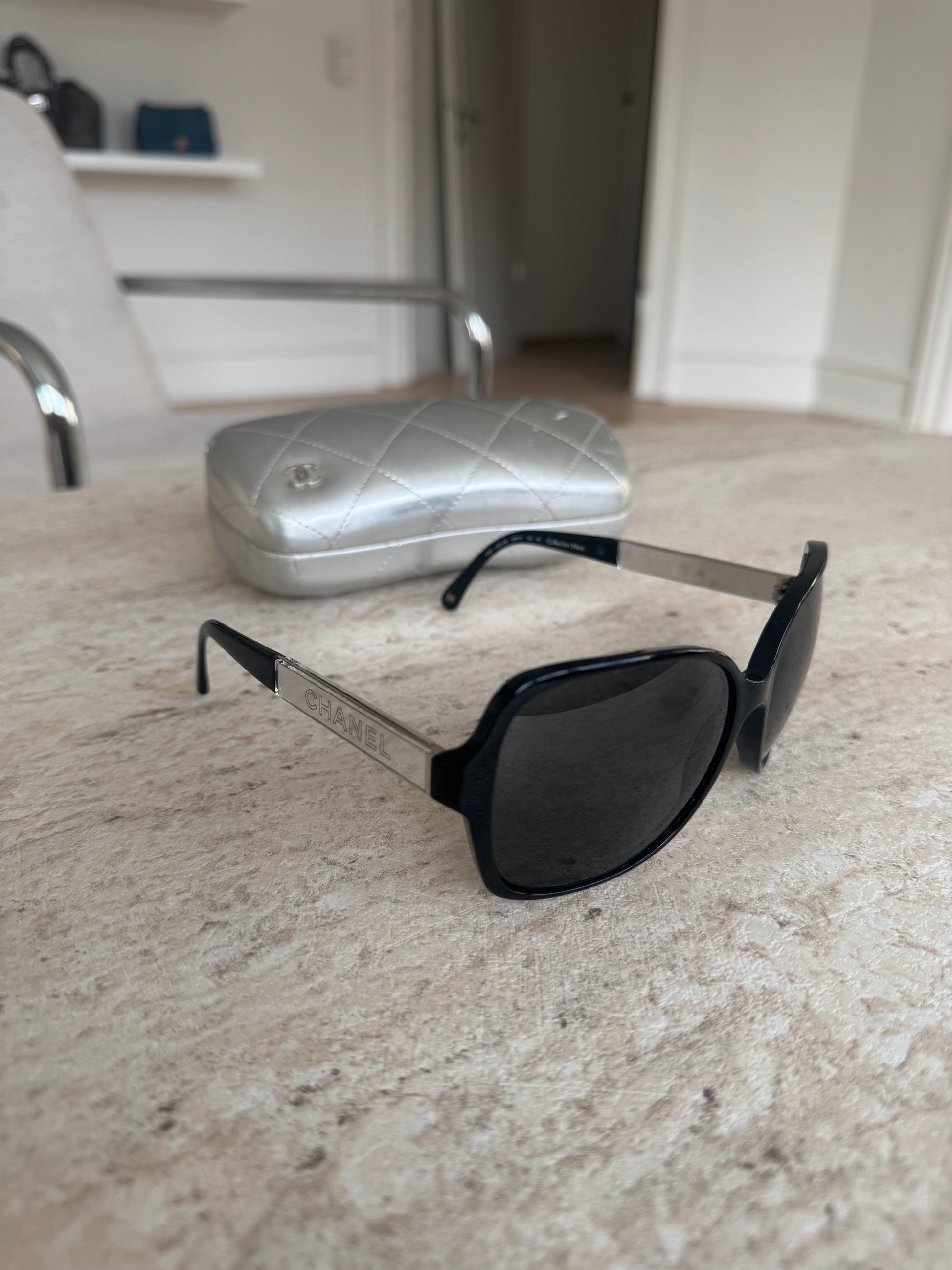 Chanel Solbriller – Sort / Sølv Metal Logo