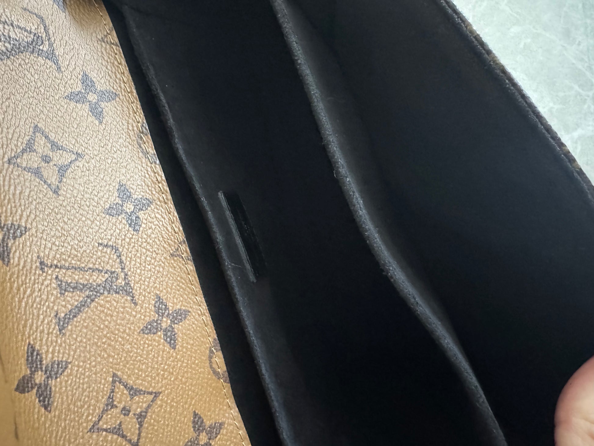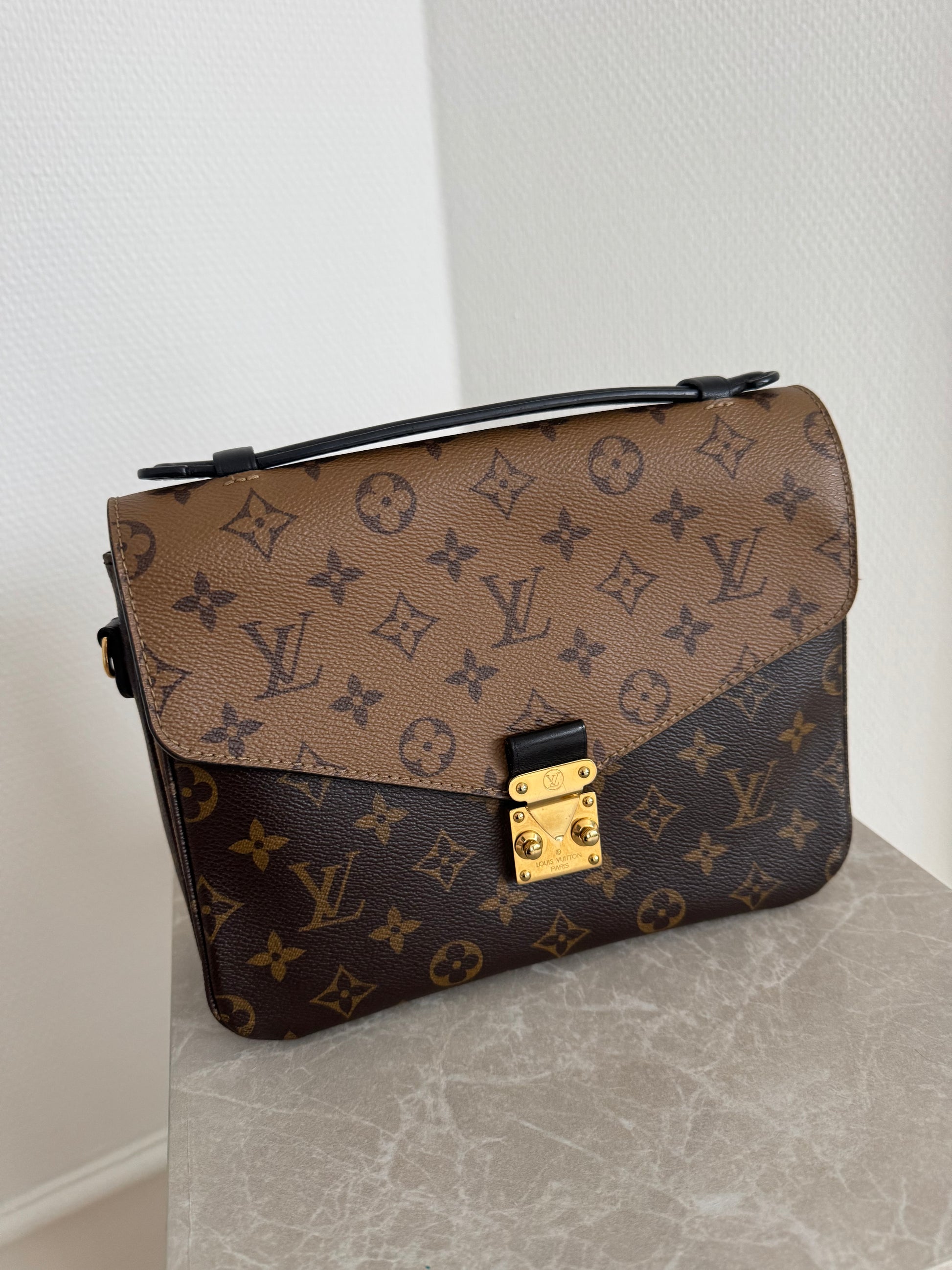 Louis Vuitton Pochette Métis i det populære Reverse Monogram, som giver tasken et cool og moderne udtryk. Kombinationen af klassisk monogram og omvendte nuancer gør den ekstra iøjnefaldende. Tasken er i rigtig pæn stand med flot struktur i canvas og fine læderdetaljer. Den rummelige indretning med flere rum gør den perfekt til både hverdag og byliv. Lukkes med den ikoniske S-lock i guldhardware. Kan bæres i hånden, over skulderen eller crossbody med den justerbare skulderrem. En eftertragtet LV-model, der kombinerer funktionalitet og stil – perfekt til dig, der vil have luksus med et moderne twist.