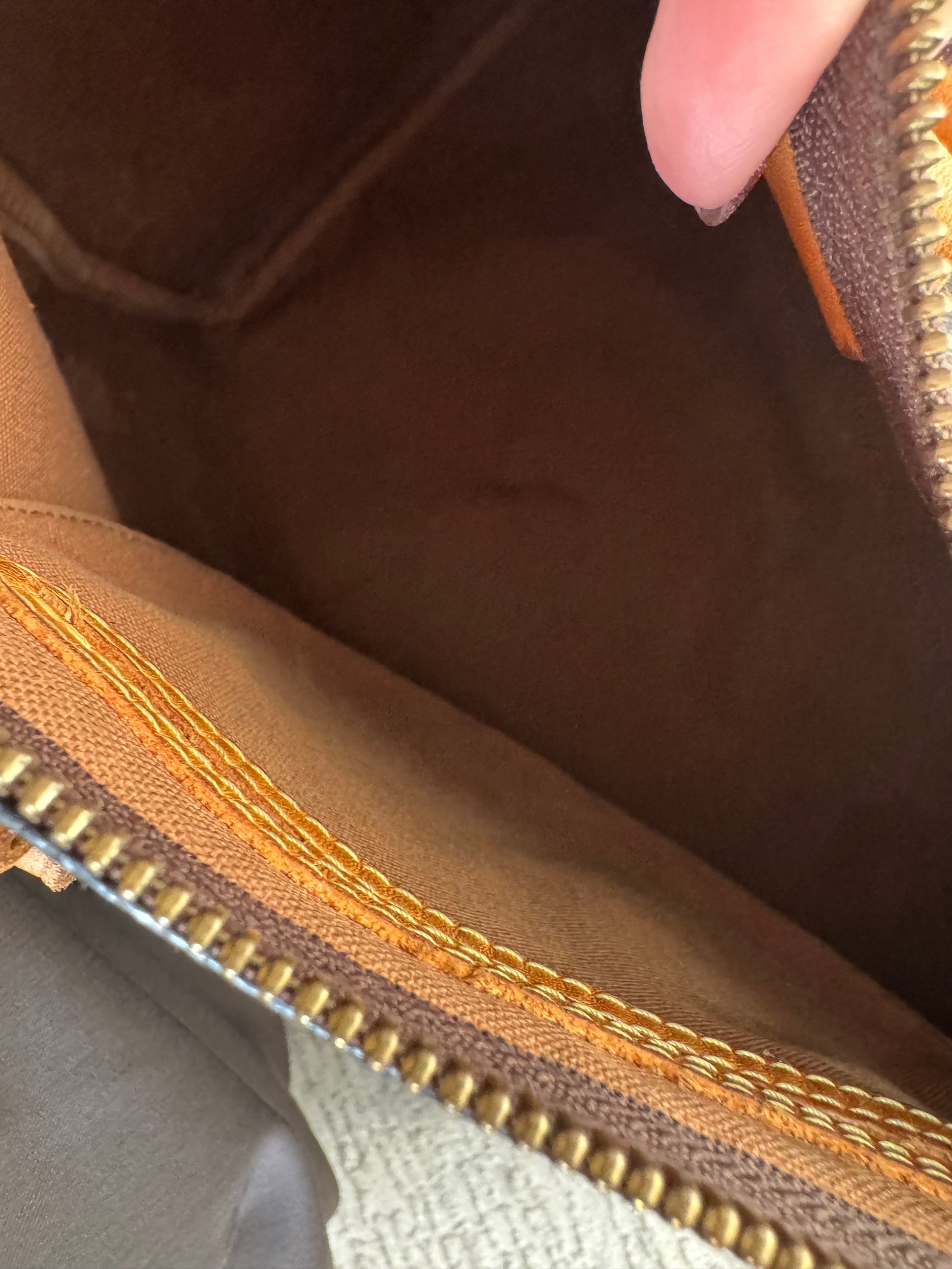 Tasken er i flot stand med smukt, jævnt patineret læder og velholdt canvas. Håndtagene fremstår flotte, formen er bevaret, og den samlede helhed er virkelig pæn – et oplagt valg, hvis du ønsker en Speedy, der både er klassisk og klar til brug.