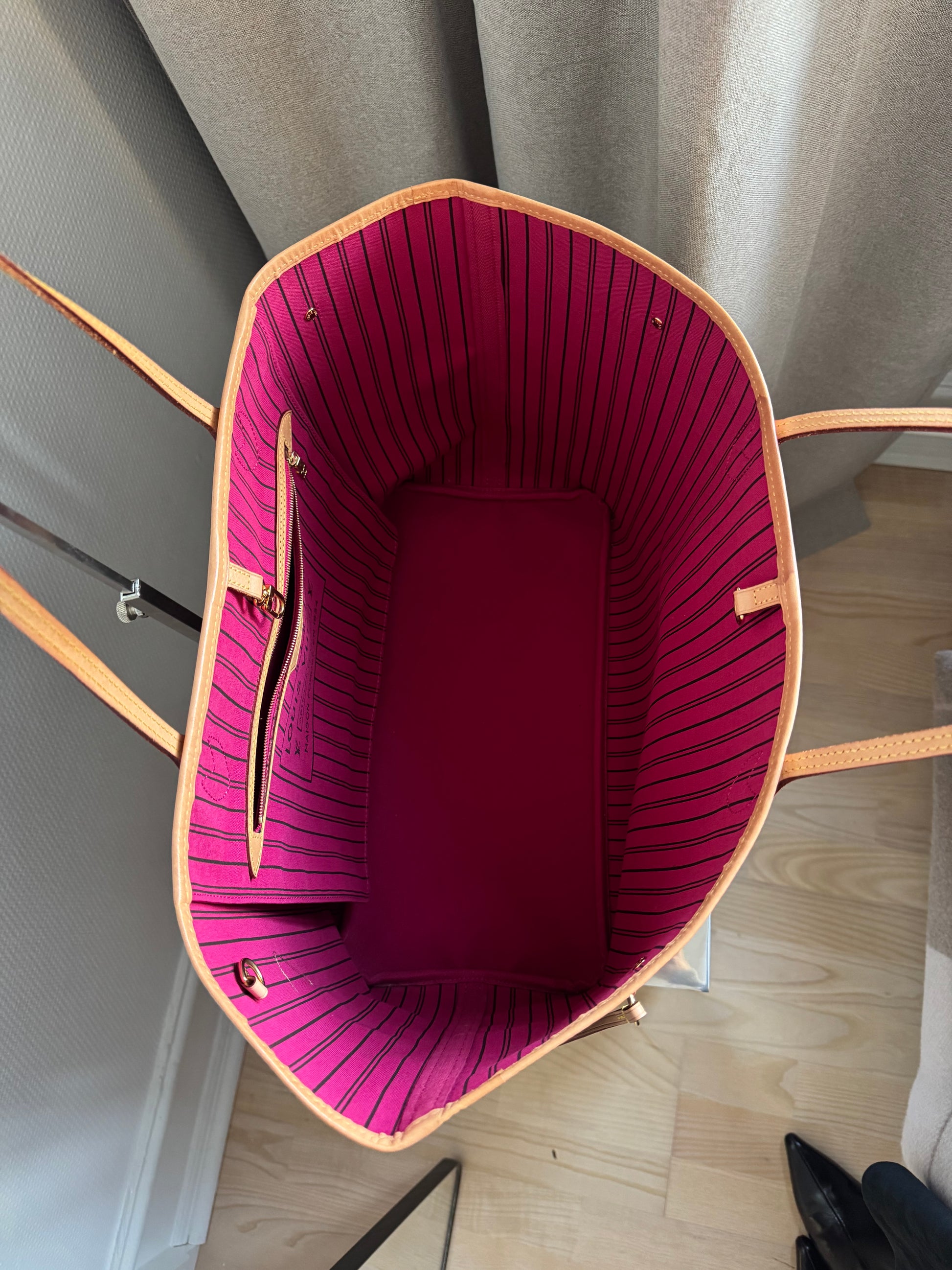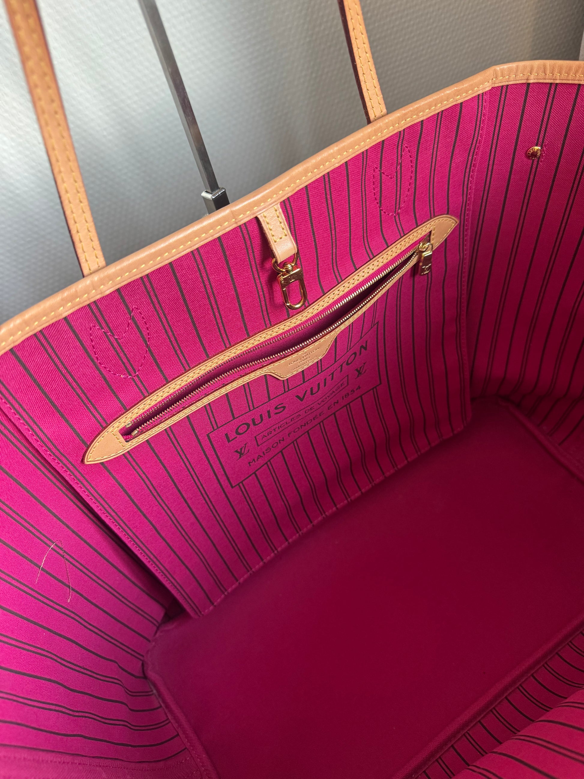 Den største og mest rummelige Neverfull-model fra Louis Vuitton – perfekt til dig, der ønsker luksus, plads og funktionalitet i én og samme taske. Klassisk Monogram Canvas kombineret med smuk pink (fuchsia) striped interior giver et elegant og tidløst look.