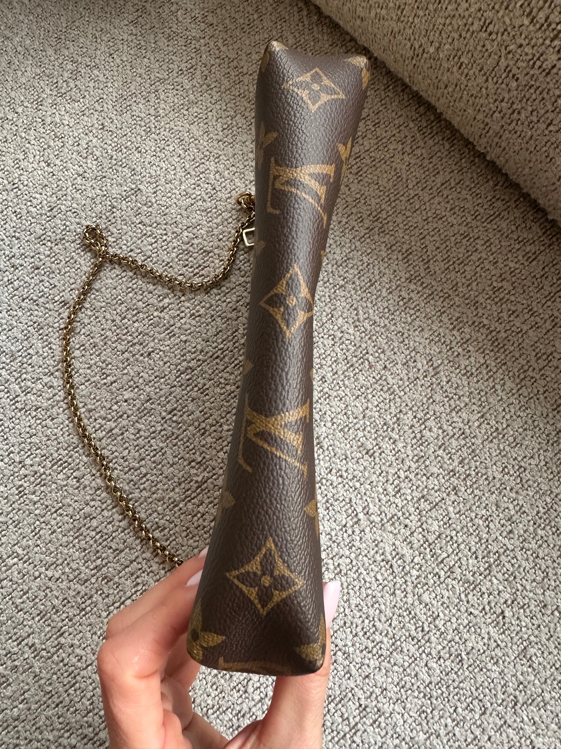 Tidløs elegance møder moderne funktionalitet. Denne eksklusive Pallas clutch i klassisk Monogram canvas med marineblå læderdetaljer emmer af luksus og stil.