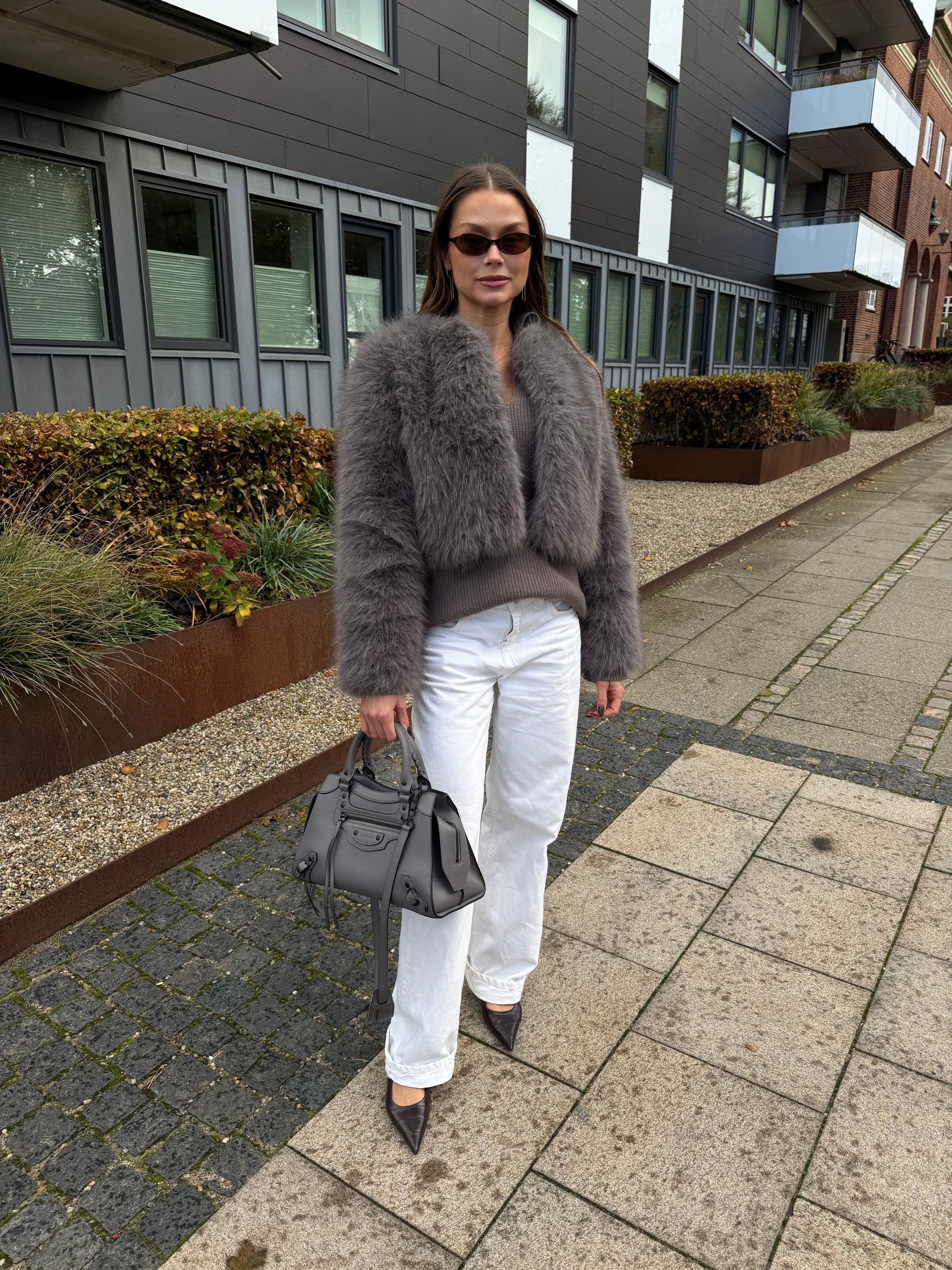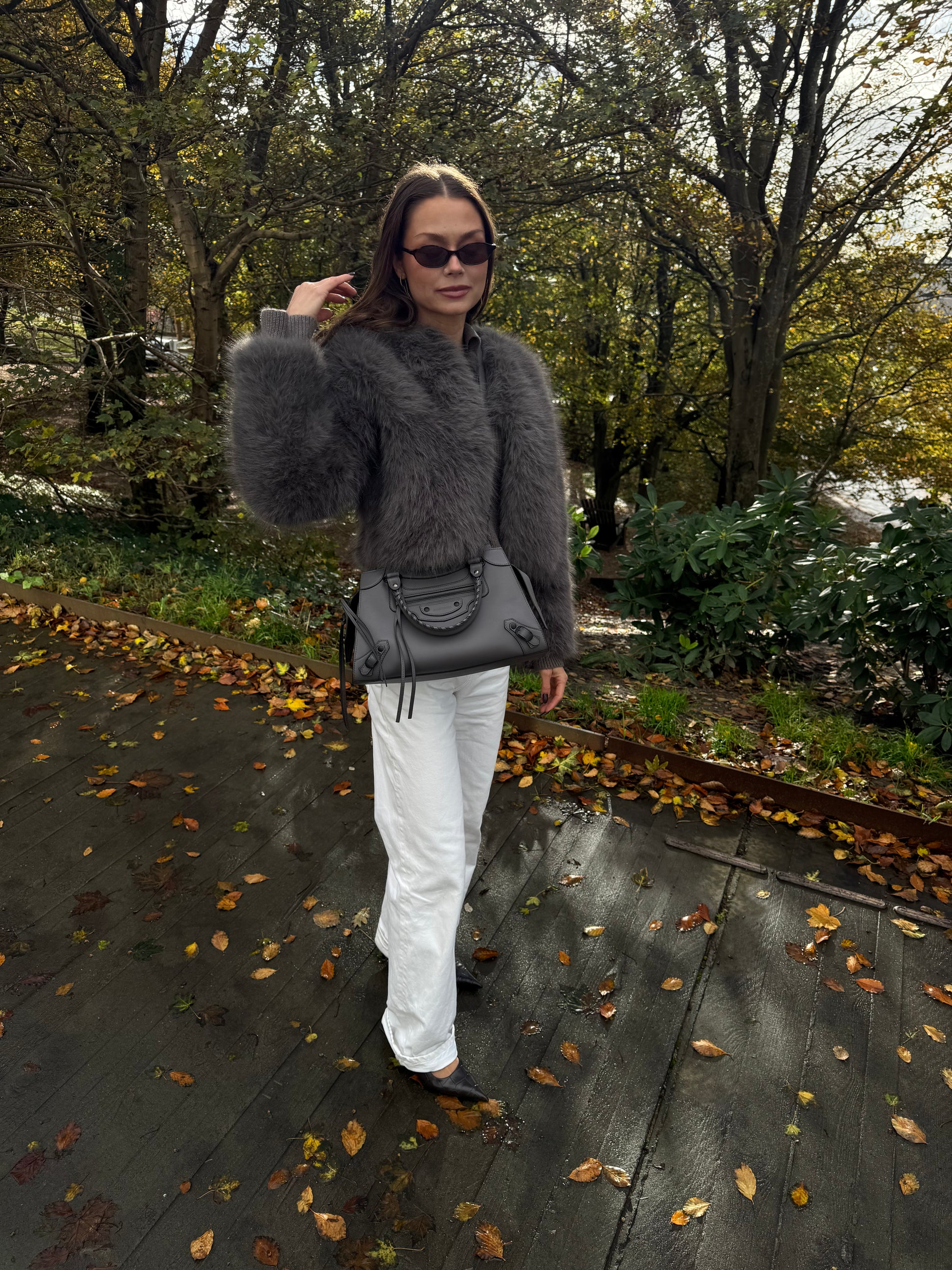 En moderne klassiker fra Balenciaga – den ikoniske Neo Classic Small Top Handle i en eksklusiv mørkegrå nuance. Tasken kombinerer Balenciagas karakteristiske biker-detaljer med et mere struktureret og tidløst udtryk.